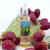 - Skin softening dry oil spray made with organic jojoba oil and fresh prickly pear juice scent made with esse