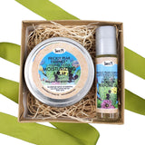 • Moisturizing Balm: certified organic Simmondsia chinenses (jojoba seed oil), Coco nucifera (coconut oil), Vitellaria paradoxa (shea butter), Cara alba (beeswax),  Proprietary essential oil blend